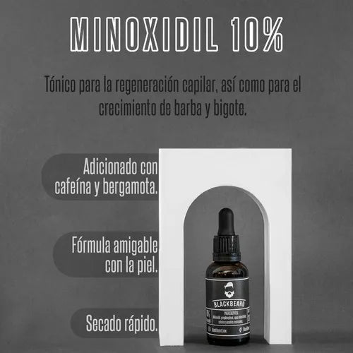 El uso regular de Minoxidil 10% Blackbeard no solo promueve el crecimiento del cabello, sino que también puede mejorar la apariencia y la textura del vello facial. Este producto se convierte en un aliado indispensable para quienes buscan una solución efectiva y confiable para el cuidado del cabello y la barba. Transforma tu rutina de cuidado personal en un ritual de confianza y bienestar.